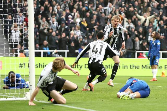 第20分鐘,紐卡斯爾擴大優(yōu)勢:又是沃爾特馬德門(mén)前搶點(diǎn)射門(mén),切爾西0-2!